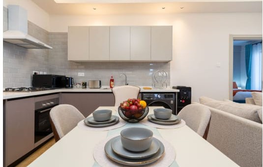 Fully equipped with all modern amenities like Big sofas, dining area, Google TV, fridge, microwave, gas cooker, free private parking, free WIFI, and Netflix.